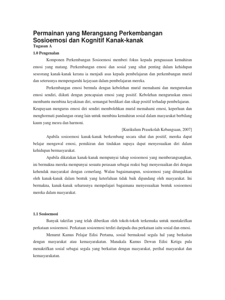 Permainan Yang Merangsang Perkembangan Sosioemosi Dan Kognitif Kanak Pdf